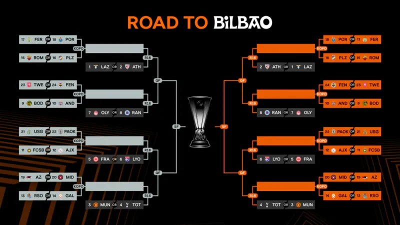 Así está el cuadro de la Europa League ahora mismo. Recordamos que el Athletic espera ya rival en octavos y que hoy conoceremos el de la Real Sociedad...