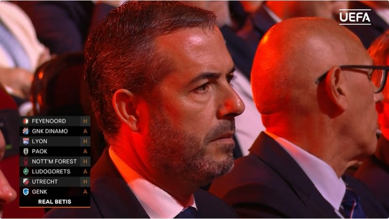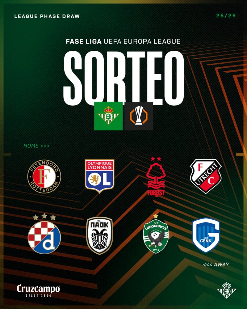- Los rivales del Betis: En casa: Feyenoord, Lyon, Nottingham Forest y Utrecht. Fuera: Dinamo Zagreb, PAOK, Ludogorets y Genk