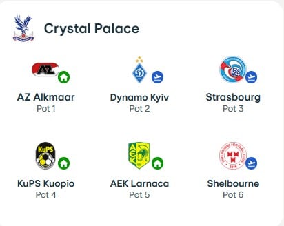 Bombo 2: Sparta PRAGA (CZE), Dynamo Kiev (UCR), Crystal Palace (ING), Lech Poznan (POL), Rayo Vallecano (ESP), Shamrock Rovers (IRL).