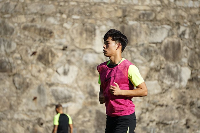 El jugador asiático ya se entrena bajo las órdenes de Eder Sarabia. Lleva ya una semana en dinámica del primer equipo y podría disfrutar de sus primeros minutos con el conjunto andorrano este viernes ante el Huesca. Una piedra de toque exigente para medir las condiciones futbolísticas del joven talento.