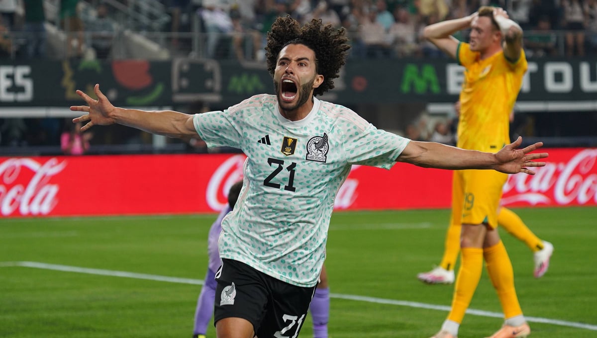 César 'Chino' Huerta festejando un gol con MéxicoCordon Press