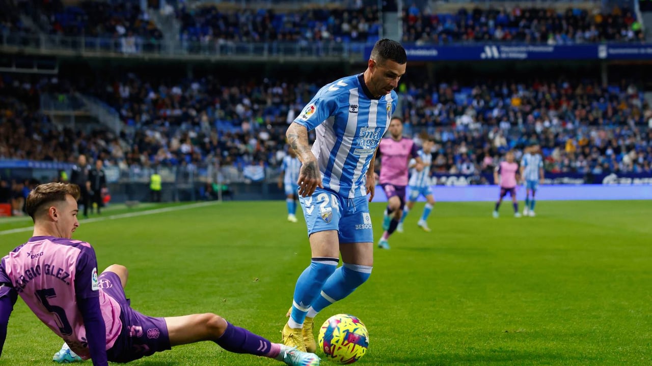 Rubén Castro conduce un balón con la camiseta del Málaga CF.Málaga CF