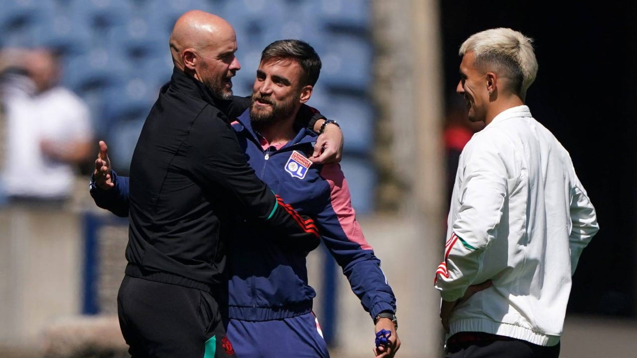 Erik Ten Hag saluda cariñosamente a Tagliafico.Cordon Press