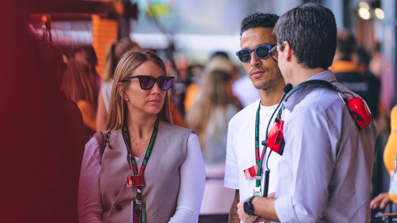 El mediocentro hispano-brasileño, en Silverstone junto a su mujer viendo la Fórmula 1 desde el recinto de la Scuderia Ferrari.@Thiago