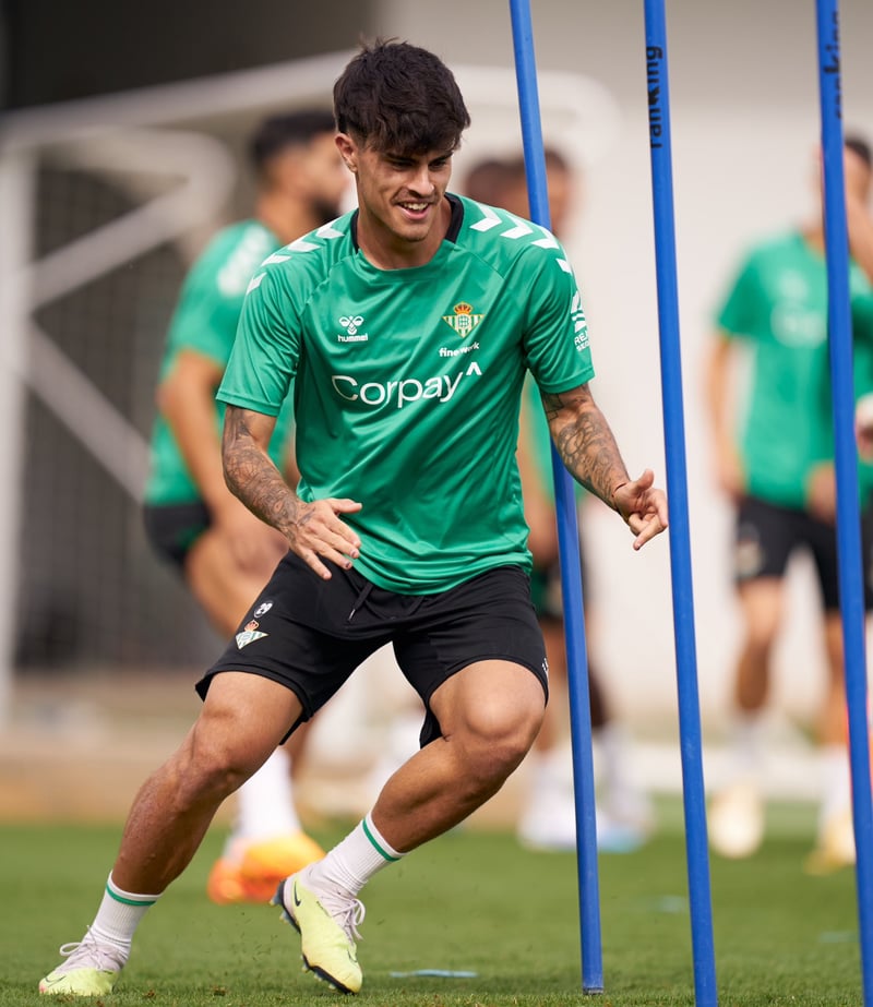 Colecciona halagos en pretemporada y cruza los dedos para que, este año sí, las lesiones le dejen en paz. El curso pasado, el de su irrupción en la primera plantilla (gol incluido en San Sebastián y titularidad en Mestalla antes del parón), Juan Cruz enseñó muchas de las cosas que llevaron al Real Betis hace ahora dos años a ficharlo para su filial. Venía de descollar en la cantera del Málaga y en el San Félix, un histórico del fútbol base costasoleño. Una dolencia muscular lastró su aterrizaje, pero logró terminar a buen nivel la 21/22. En la 22/23, arrancó en Segunda RFEF con cuatro goles en otras tantas jornadas, un par en el Nuevo Colombino y uno precioso de falta para llevarse el derbi chico. Suficiente para que Manuel Pellegrini, informado constantemente por los técnicos de los escalafones inferiores, reparase en este extremo desequilibrante tanto por dentro como por fuera.