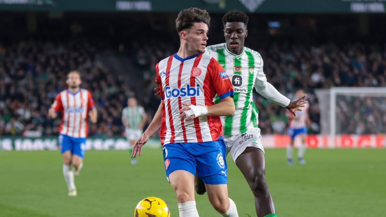 Miguel Gutiérrez, perseguido por Assane Diao durante el Betis-Girona.Cordon Press