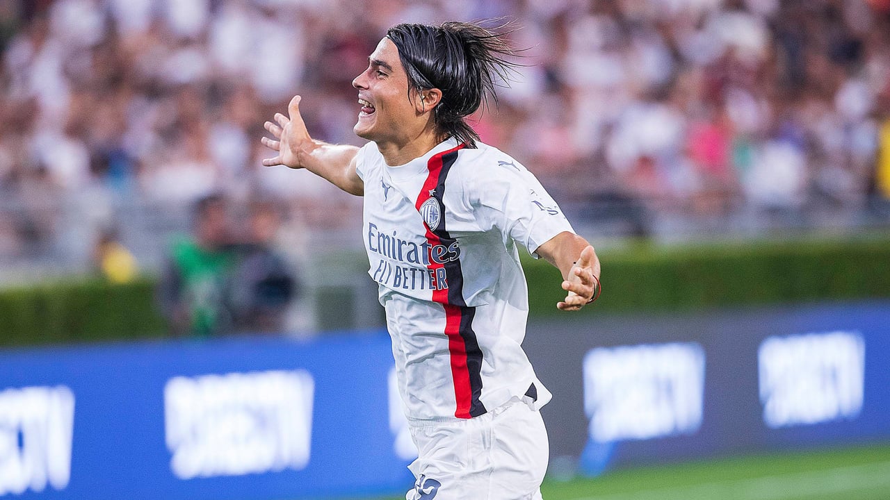 Luka Romero celebra un gol en pretemporada con el Milan.CORDON PRESS