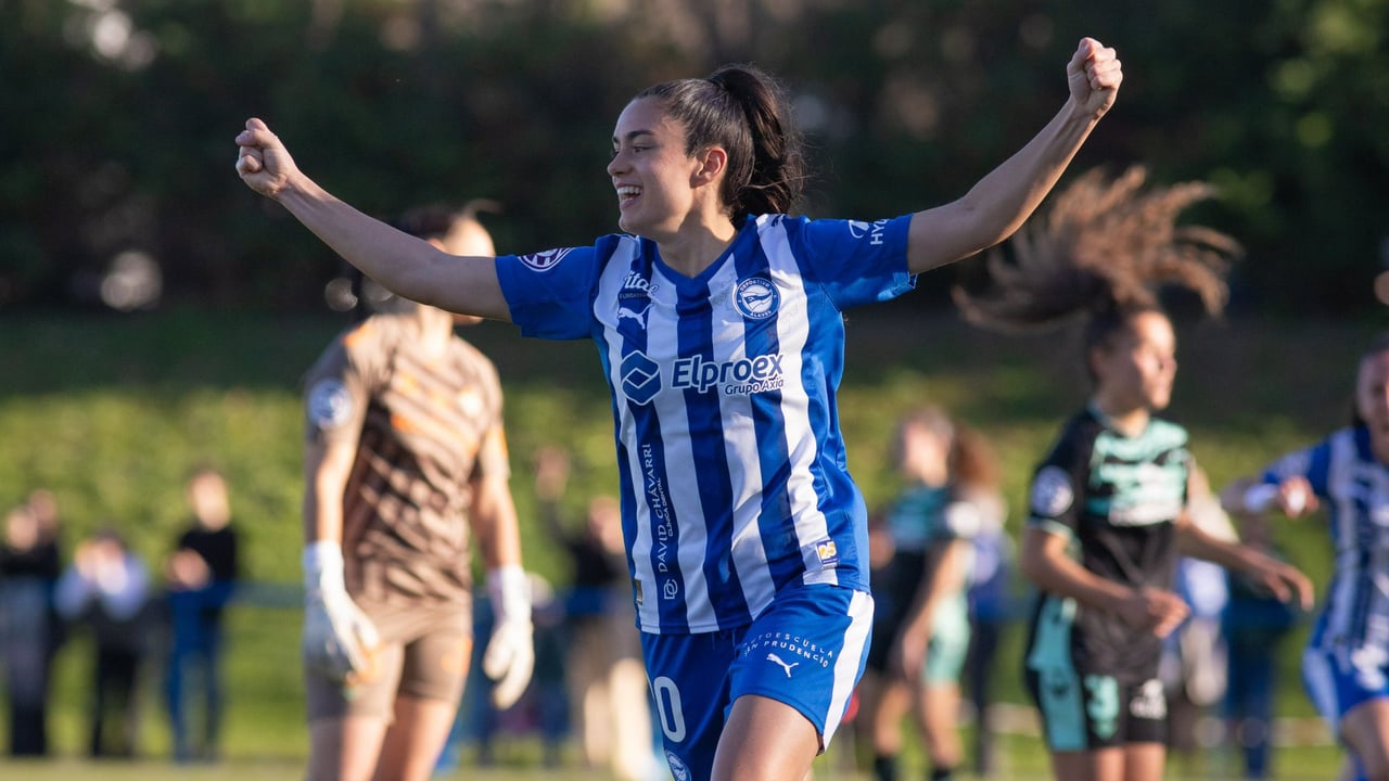 Ainhoa Guallar celebra el único tanto del partido en tierras vitorianas.@AlavesFem