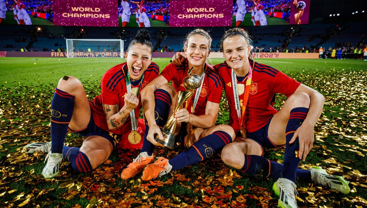 Jenni Hermoso, Alexia Putellas e Irene Paredes celebrando el título de la selección española en AustraliaX / @SEFutbolFem