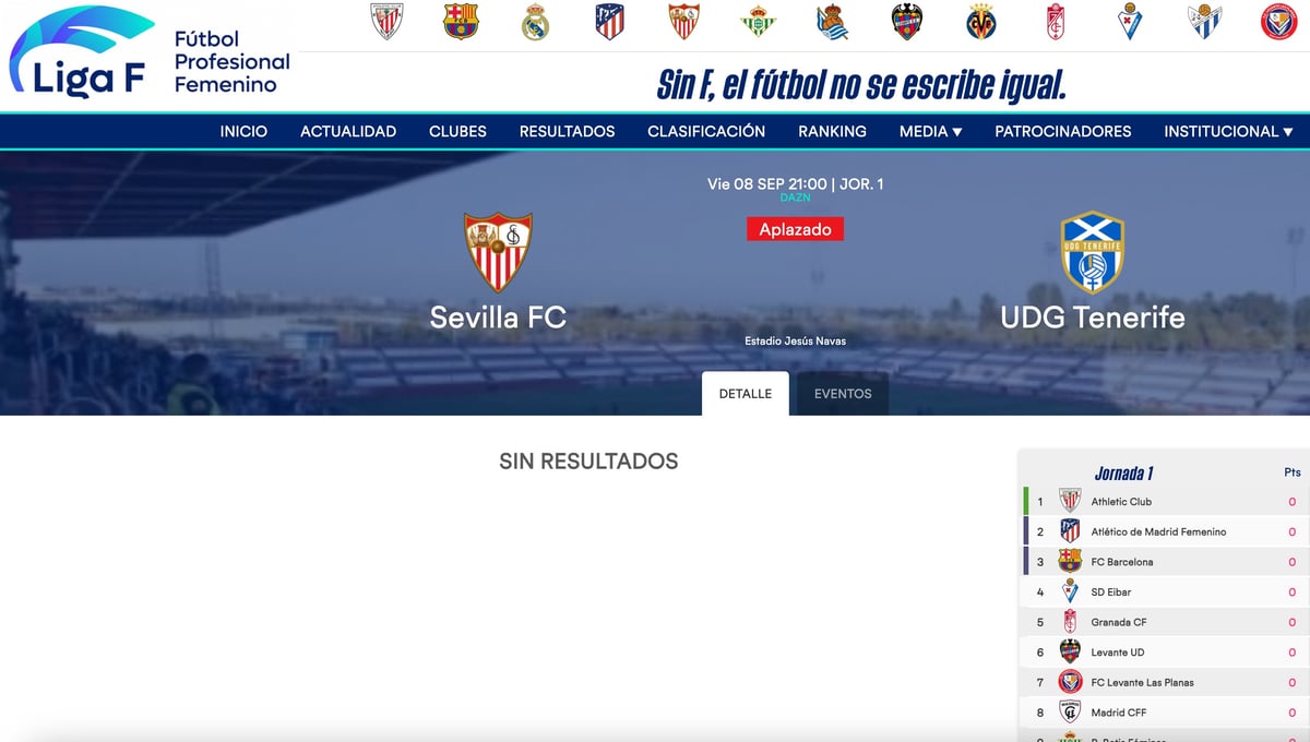 Ya es oficial que no se disputa el Sevilla FC - UDG Tenerife.LigaF