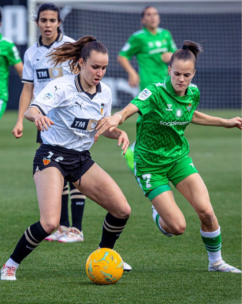 El Betis Féminas dejó en nueve su pésima racha de derrotas consecutivas. Las pupilas de María Pry salvaron un punto sobre la bocina gracias a un golazo de Natalia Montilla, si bien el triunfo del Granada CF en su visita al Levante Las Planas provoca que las verdiblancas caigan a puestos de descenso en la Liga F. Solamente el desahuciado Sporting Club Huelva marcha por debajo del conjunto heliopolitano, que no se hundió definitivamente este domingo en el Antonio Puchades con dos acciones, tres en realidad, muy seguidas y contrarias a sus intereses. Y es que el Valencia CF, que ganaba 1-0 desde el minuto 35 al aprovechar Marina Martí de tiro cruzado la enésima asistencia del curso de Fiamma, cometió penalti en el alargue del primer tiempo, pero la cancerbera local, Antonia Canales, detuvo el lanzamiento de Júlia Aguado y frustró las opciones de empatar.