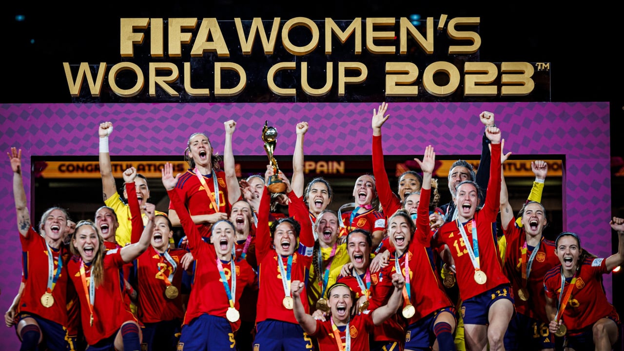 Imagen de las españolas levantando el título de campeonas del mundoTwitter: @SEFutbolFem