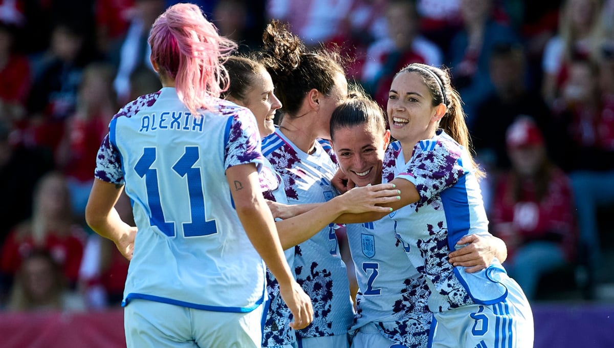 La presión tras pérdida en el campo rival fue clave para la Roja. Las de Jorge Vilda se hicieron con la posesión del balón desde el principio y no tardaron en abrir el marcador. En el minuto 6, Mariona Caldentey dejó el esférico a Ona Battle, que, desde fuera del área, puso el balón en la red tras un potente disparo, marcando su primer gol con la selección absoluta.