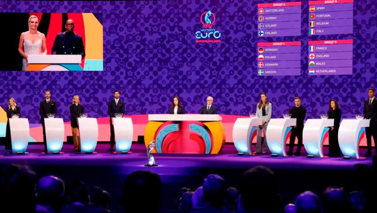 Las manos inocentes del sorteo fueron la española Vero Boquete, Leonardo Bonucci, Jill Scott, Caroline Seger, Xherdan Shaqiri, Sami Khedira y Raphaël Varane, para acompañar a Giorgio Marchetti, como secretario general de la UEFA, y Nadine Kessler, directora de fútbol femenino del organismo a 'elegir' las bolas que saldrían seleccionadas para cada grupo y con los que finalmente saldrían los nombres de las selecciones de cada uno.