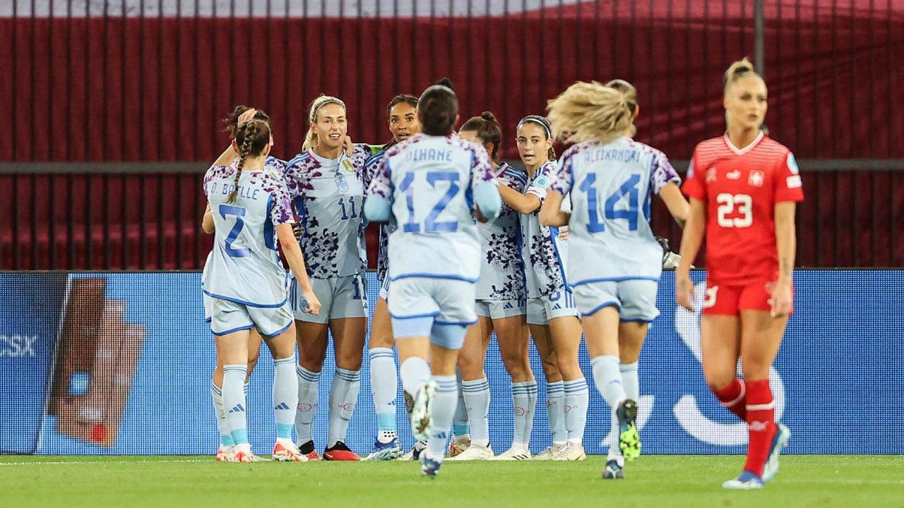 Jugadoras de la Selección española celebrando un gol ante Suiza.Cordon Press.