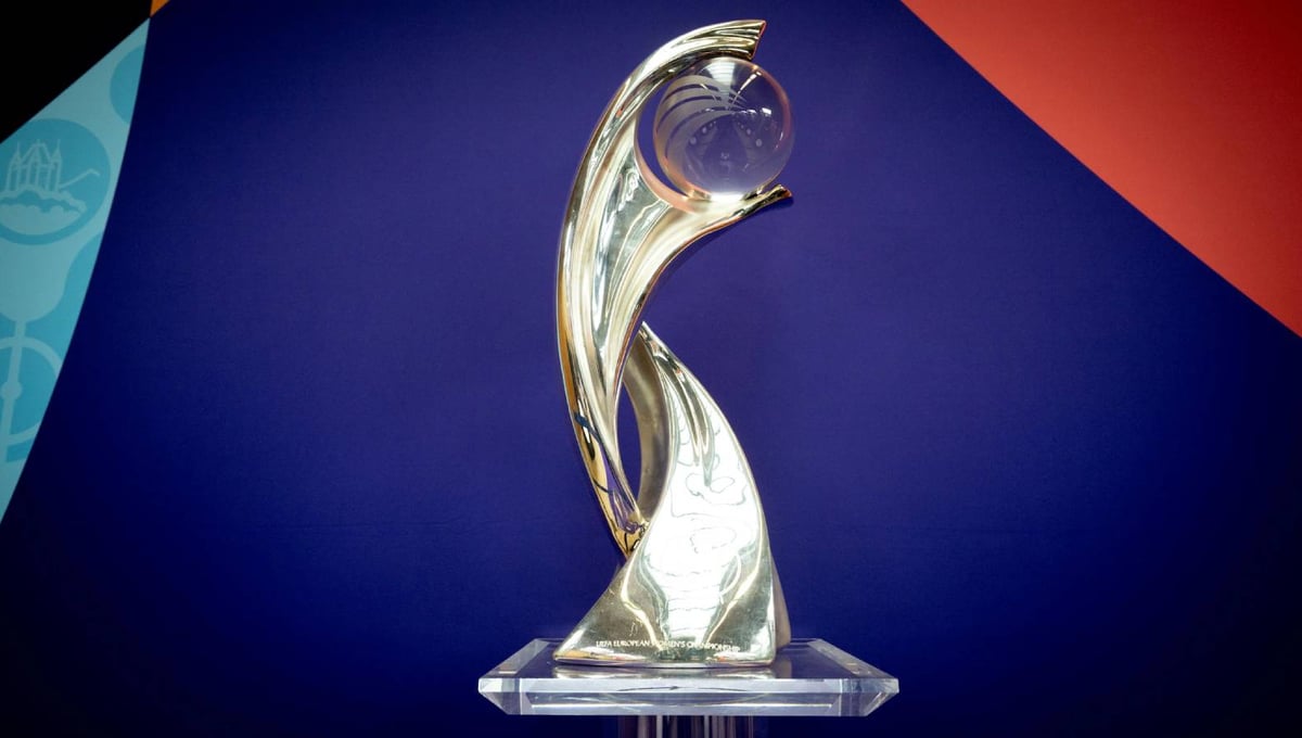 El trofeo de la EURO Femenina de la UEFA 2025 en NyonUEFA