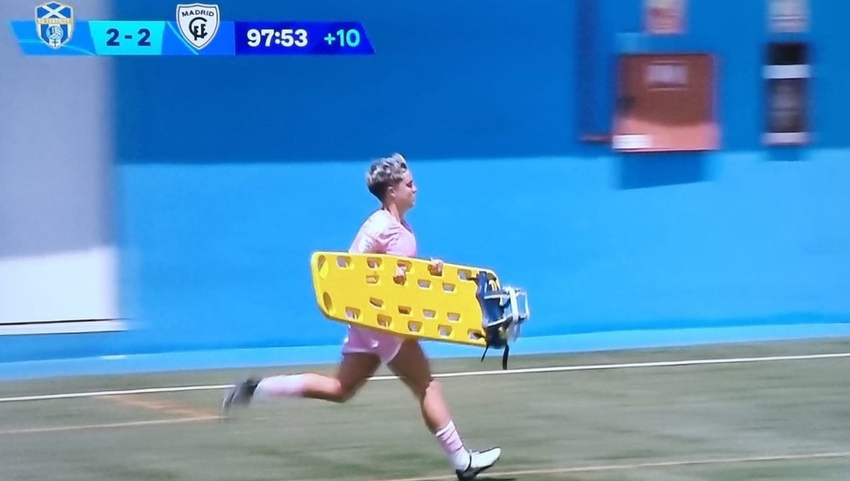 La delantera Lucía Pardo tuvo que ir ella misma a por la camilla para atender a su compañera del Madrid CFF
