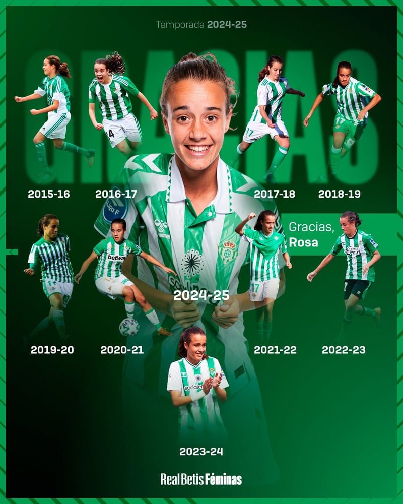 "Mi familia siempre me decía que iba a pasar esto, pero yo no sabía las dimensiones, que para mí fueron más grandes de lo esperado. No lo sé, porque también vivo en una ciudad que para muchas cosas pues nos gusta sentirlo de muy cerca. Me pareció un poco injusto, porque para un Betis-Eibar sólo venían a verme mis padres. Entonces, me parece un poco hipócrita cuanto menos. A mí me quitaron la capitanía hace 2-3 años; yo no era capitana del Betis, eso es mentira, y quien quiera que vaya a Twitter, que hoy en las redes sociales está todo. Es que eso no se contó, no, ni yo lo quería contar; de hecho, hay muchas cosas personales que, bueno, pues que son cosas que pasan, que me las quedo como aprendizaje y ya está. Hay mucha gente también que he perdido; ha habido gente que me ha sorprendido, porque yo no soy Rosa la que juega en el Betis, yo soy Rosa, juegue donde juegue, y ha habido gente que yo no he sabido de ellas desde que firmé por el Sevilla Fútbol Club, y eso cuanto menos me sorprende. Ahora mismo estoy un poco desenganchada; ahora mismo estoy muy contenta en el Sevilla, donde le tengo que dar las gracias a Amparo y, sobre todo, al club, por cómo me acogieron desde el primer día. Me protegieron muchísimo, y eso lo he valorado mucho (...) Me tiré 2-3 semanas entrenando y no había salido en redes sociales cualquier foto, lo típico de los vídeos, pues lo evitaban".