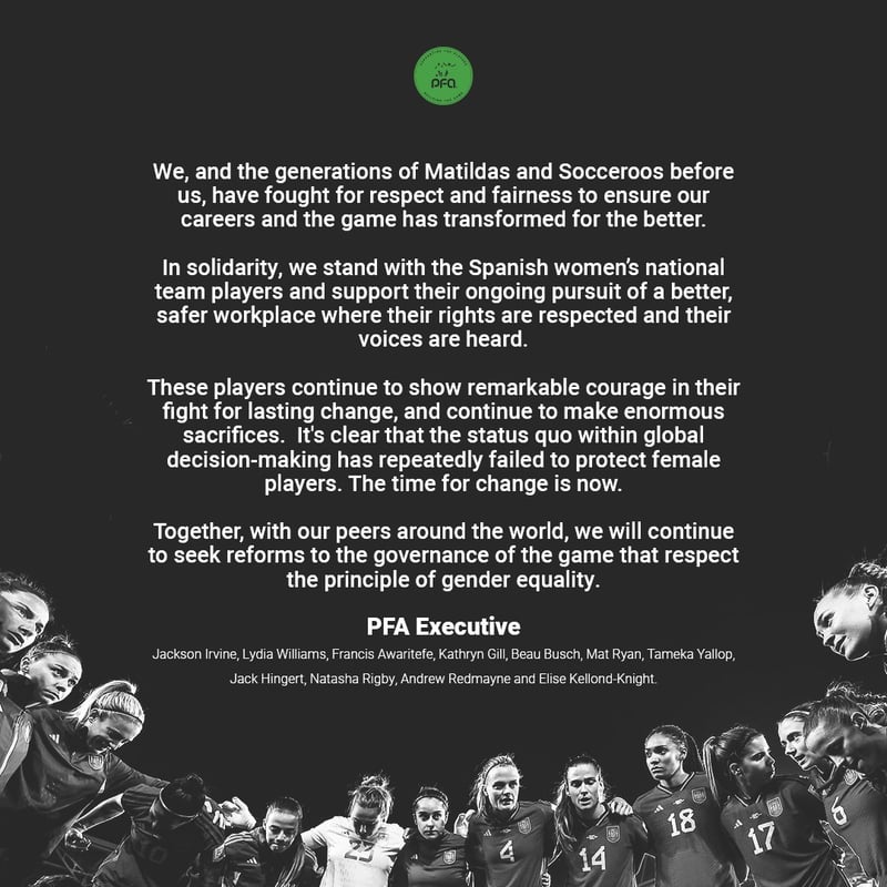 ¡Siguen las reacciones! La Selección australiana ha emitido un comunicado en apoyo a las españolas que dice así:
