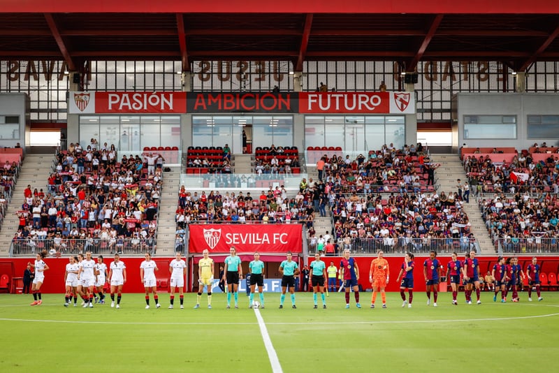 Salieron bien plantadas las de David Losada, pese a que, como era de esperar, las primeras ocasiones fueron azulgranas, sobresaliendo un disparo al larguero de Ona Battle y una buena intervención de Elena Sullastres ante Ewa Pajor. La cancerbera nervionense sería una de las más destacadas de una primera parte plena de garra y concentración que permitió a las anfitrionas controlar al colíder y gran favorito, minimizando el peligro que normalmente suele crear la escuadra adiestrada por Pere Romeu, aunque la gerundense se lució en unas cuantas llegadas más de peligro de las catalanas, especialmente un derechazo a bocajarro de Mapi León a ocho minutos largos del descanso que despejaría a córner para regocijo de sus compañeras y desesperación visitante, pues el 0-0 campeaba en el marcador electrónica cuando tocaba resetearse y refrescarse.