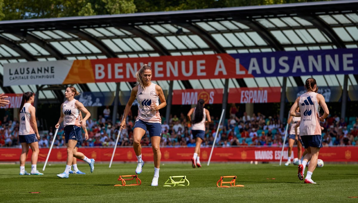 La centrocampista catalana pudo arrancar la sesión de entrenamiento con el grupo, realizando algunos ejercicios extras al margen. Tras sufrir una meningitis vírica, Bonmatí se perdió el partido de preparación ante Japón del pasado viernes, siendo ingresada en el hospital hasta el domingo. Una vez recibió el alta, la jugadora viajó el lunes hasta Lausana para concentrarse con sus compañeras, saltando al césped en la mañana del martes. Montse Tomé ha confirmado en rueda de prensa que evoluciona favorablemente, pero no se ha postulado sobre su participación esta noche. “Aitana evoluciona favorablemente. Ayer hizo una parte del entrenamiento con el readaptador, pero estuvo trabajando totalmente apartada. Lo que prima es la salud, pero su evolución es positiva”.