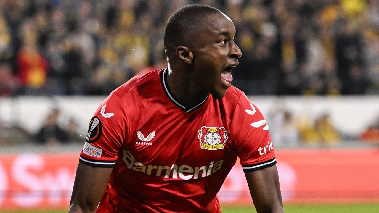 Moussa Diaby celebra un gol con el Bayer Leverkusen en la Europa LeagueTwitter / Europa League