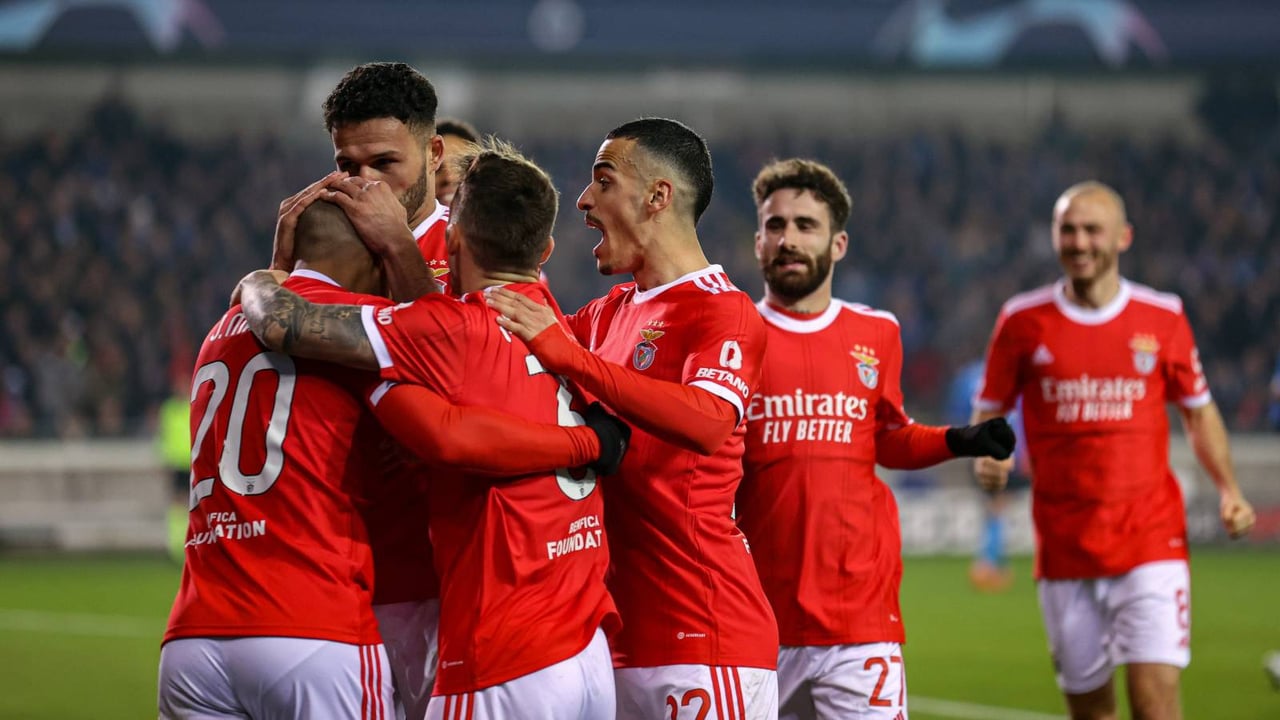 Los jugadores del Benfica celebran uno de los tantos conseguidos ante el Brujas.Twitter / SLBenfica