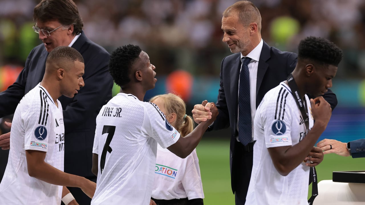 Aleksander Ceferin saluda a Vinicius tras la Supercopa de EuropaCordon Press