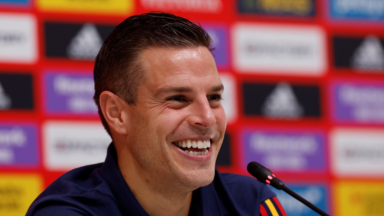 César Azpilicueta sonríe en una rueda de prensa con la selecciónUES