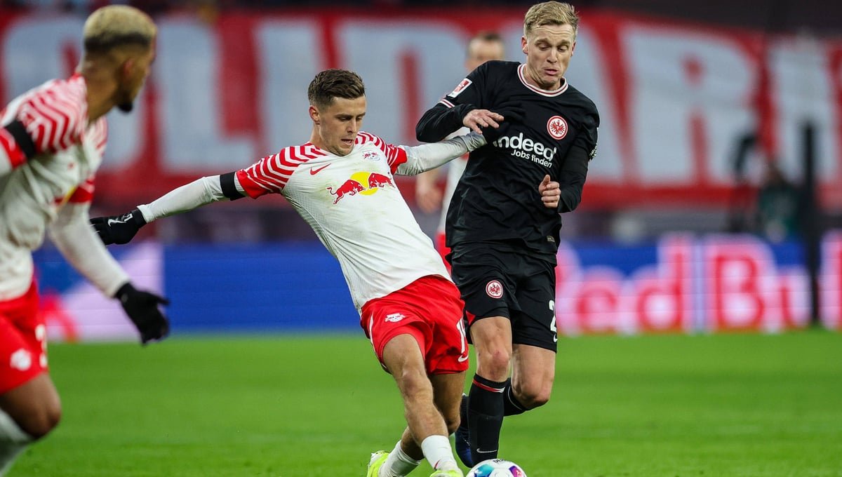 Donny Van de Beek pujando por una pelota en un partido frente al RB LeipzigCordon Press