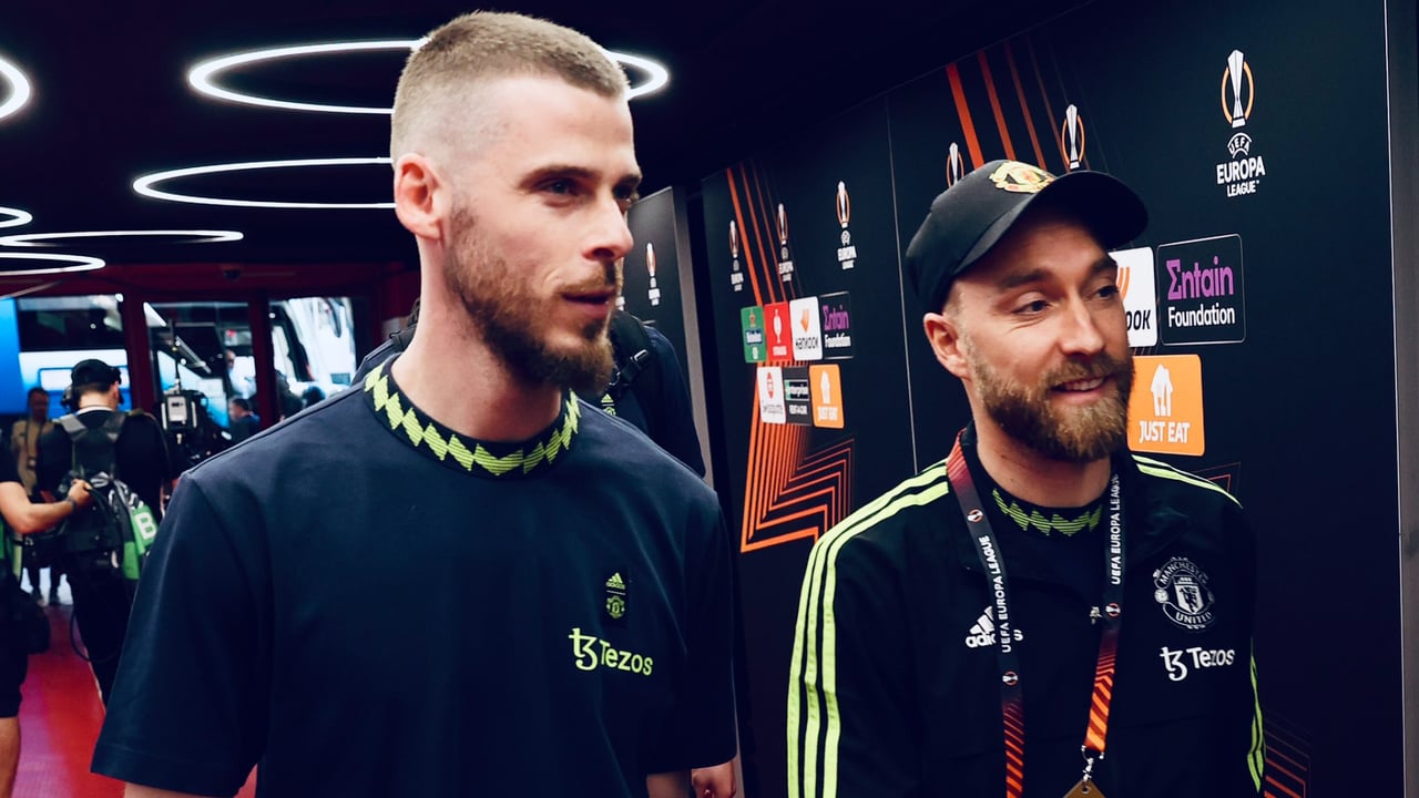 De Gea y Eriksen antes del partido frente al SevillaMU