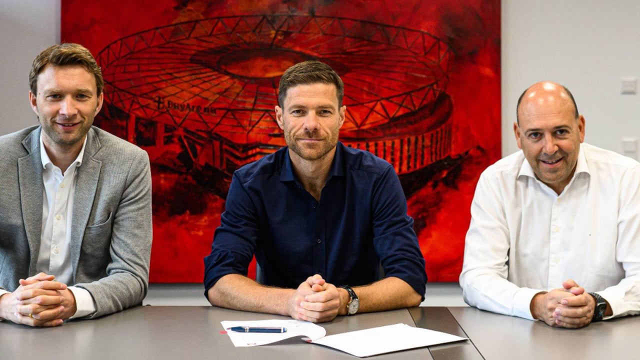 Xabi Alonso, con los dirigentes del Bayern Leverkusen.Twitter / XabiAlonso