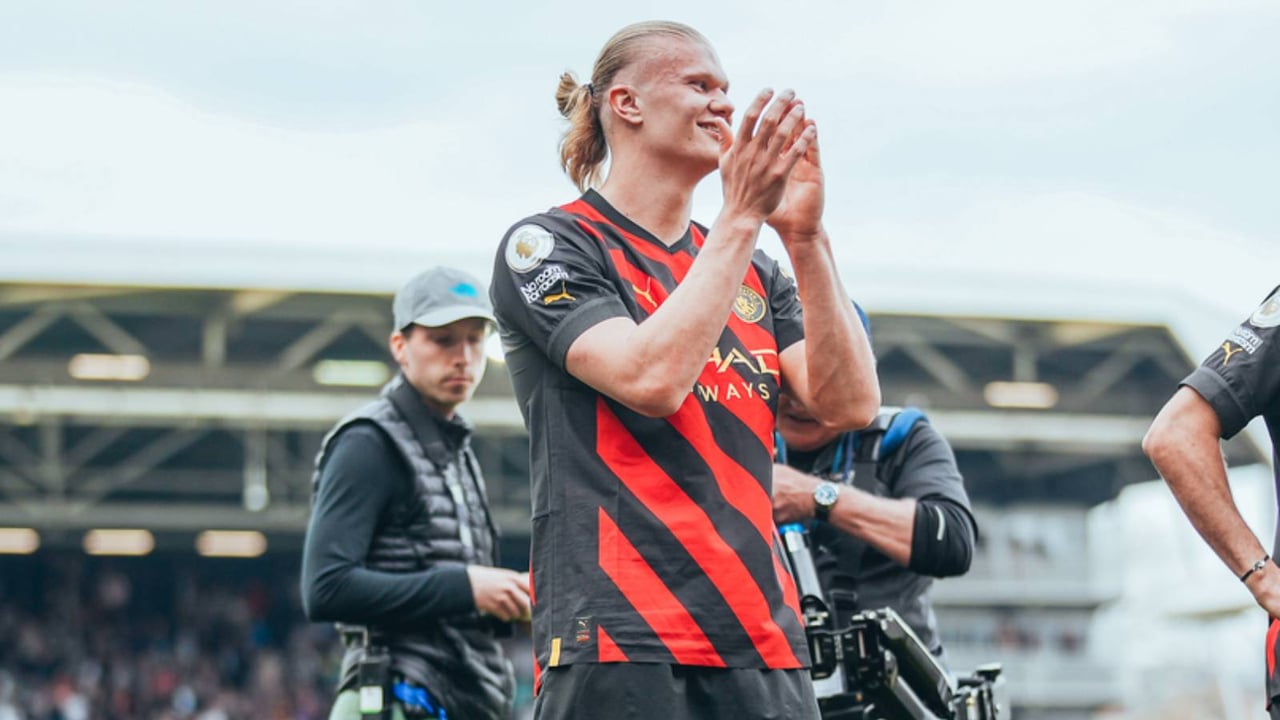 Erling Haaland, saludando a los aficionados del City en el último partido.Twitter / Manchester City