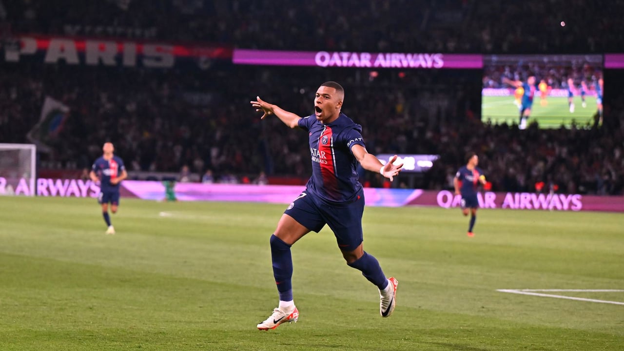 Mbappé celebra uno de sus goles con el PSG este sábadoPSG.fr