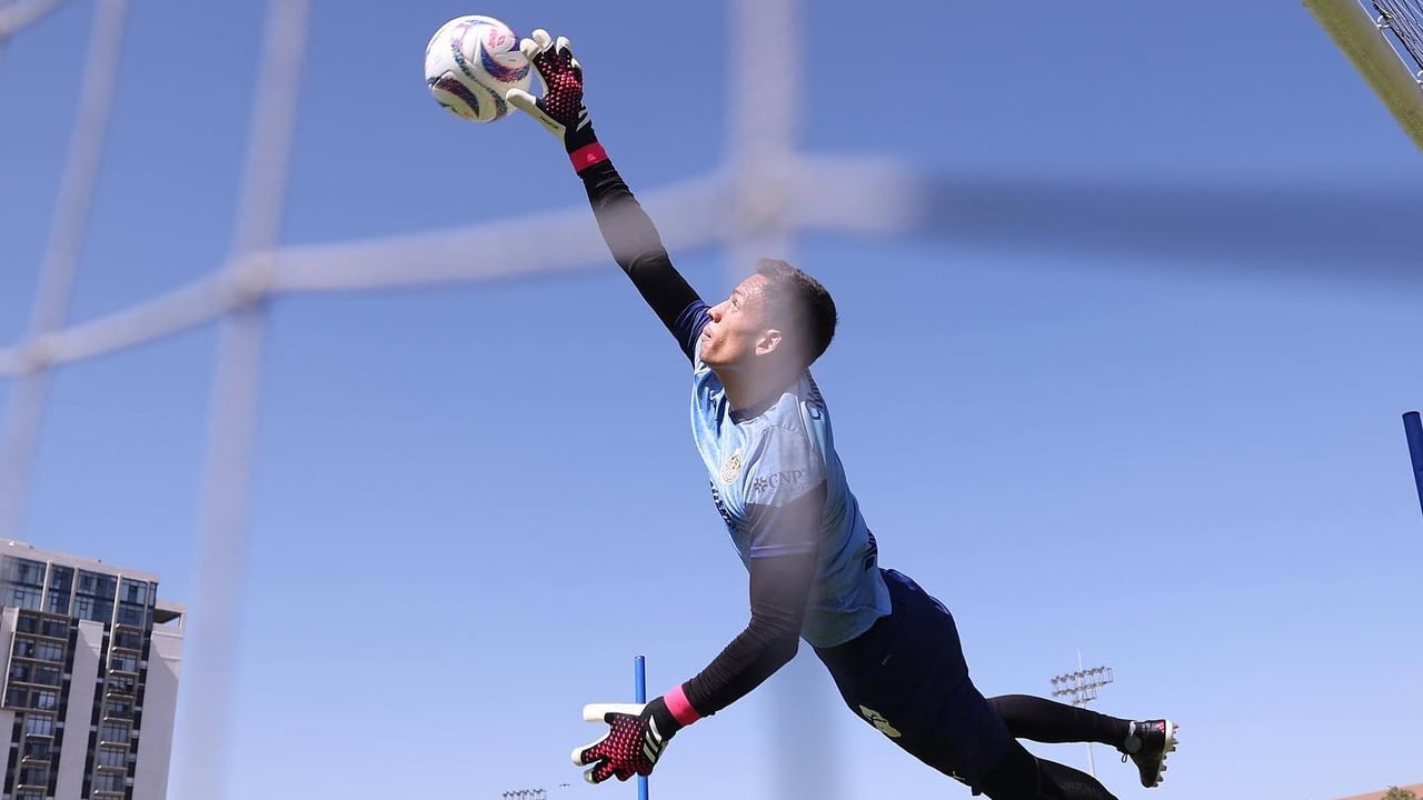 El portero oriundo de Zaragoza vuela durante una sesión en Guadalajara.@oscarwhalley