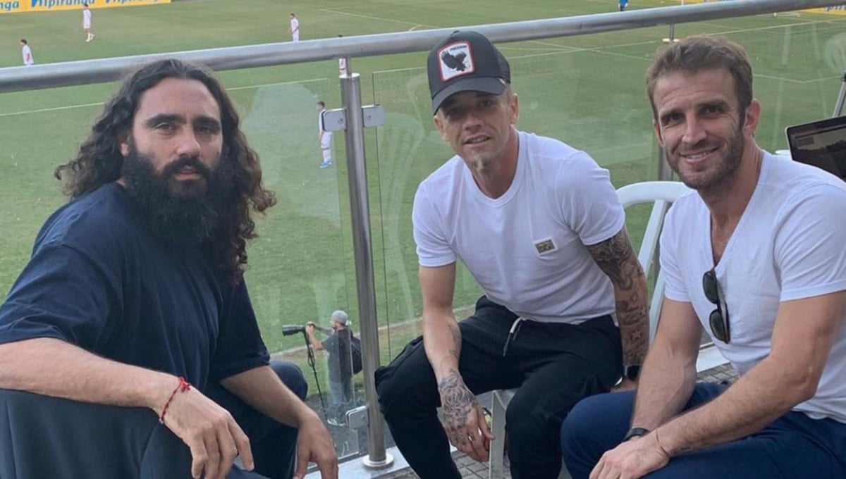 De izquierda a derecha: Juan Pablo Sorín, Andrés D'Alessandro y el ex delantero uruguayo.@AlonsoIvan24