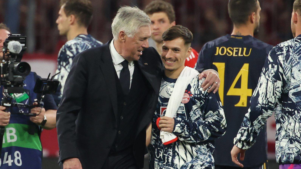 Bryan Zaragoza junto a Ancelotti en el duelo de Champions LeagueCordon Press