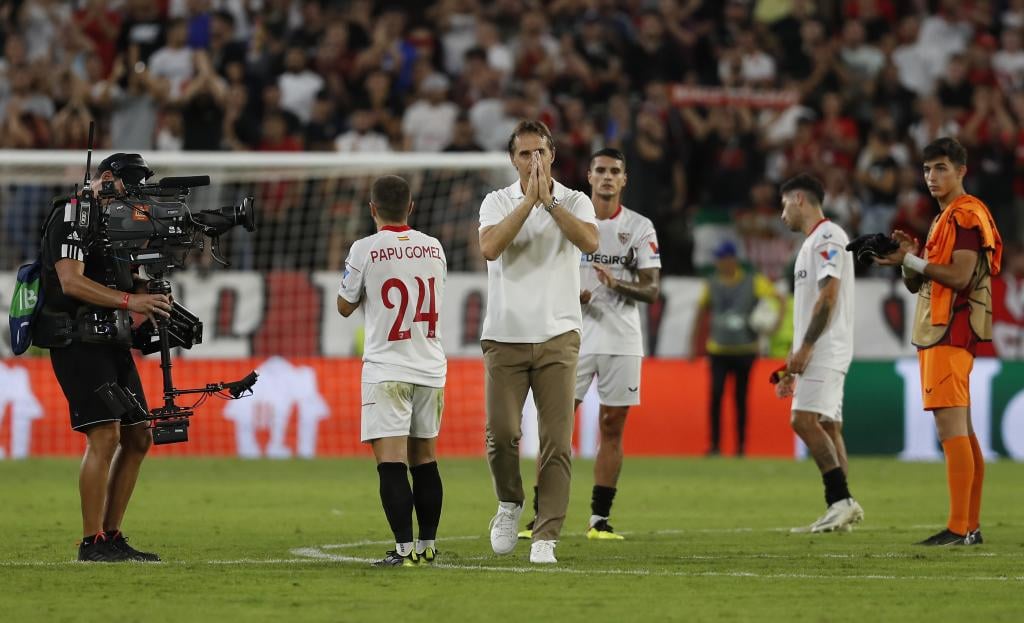 Julen Lopetegui, ya como exentrenador del Sevilla FC, se despidió del sevilismo en el antepalco del Ramón Sánchez-Pizjuán en un emotivo acto en el que definió sus tres años al frente del banquillo blanquirrojo como “históricos y muy bonitos”. Una etapa a la que ponía fin formalmente después de que la noche antes el club le comunicara que era destituido, tras la derrota en Champions frente al Borussia Dortmund.
