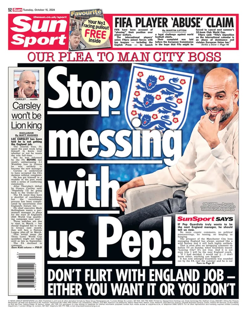 Lee Carsley, seleccionador actual ya apuntó el perfil que tiene que tener el nuevo seleccionador, dejando entrever que Pep Guardiola sería un candidato ideal al cumplir con todos los requisitos: "El puesto merece un entrenador de talla mundial, que haya ganado trofeos y haya estado allí y lo haya hecho. Yo sigo en el camino de hacerlo".