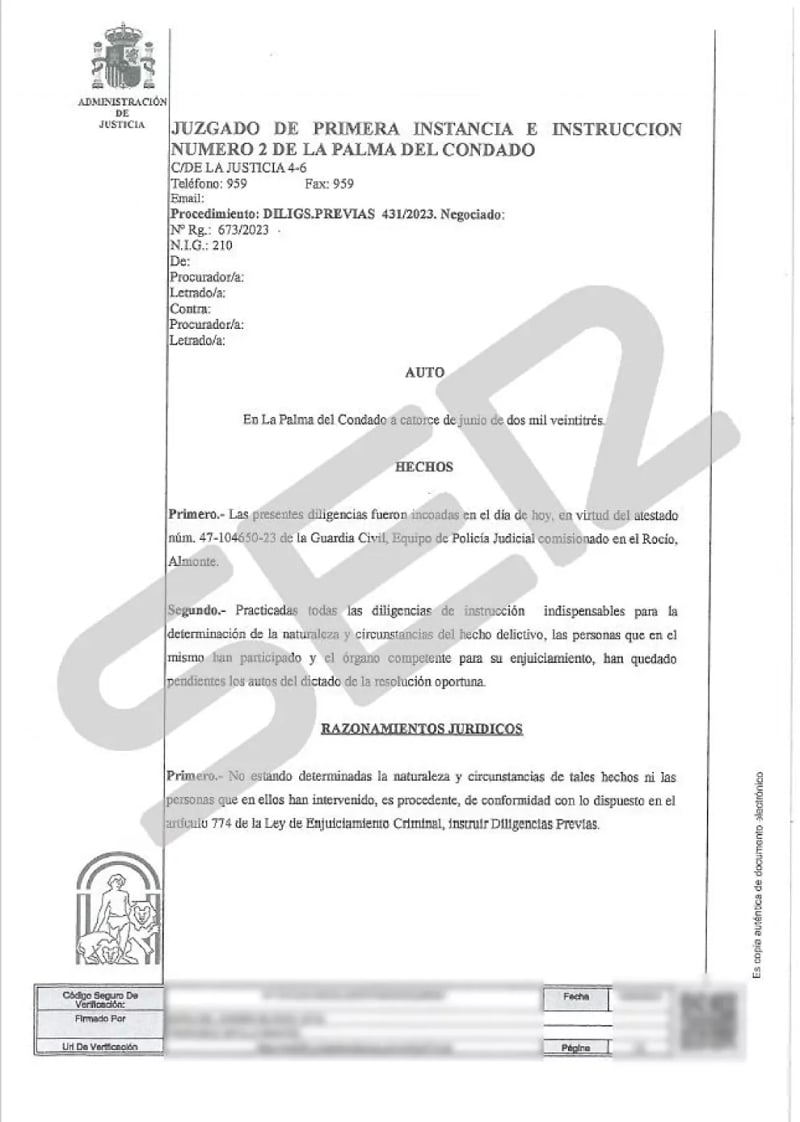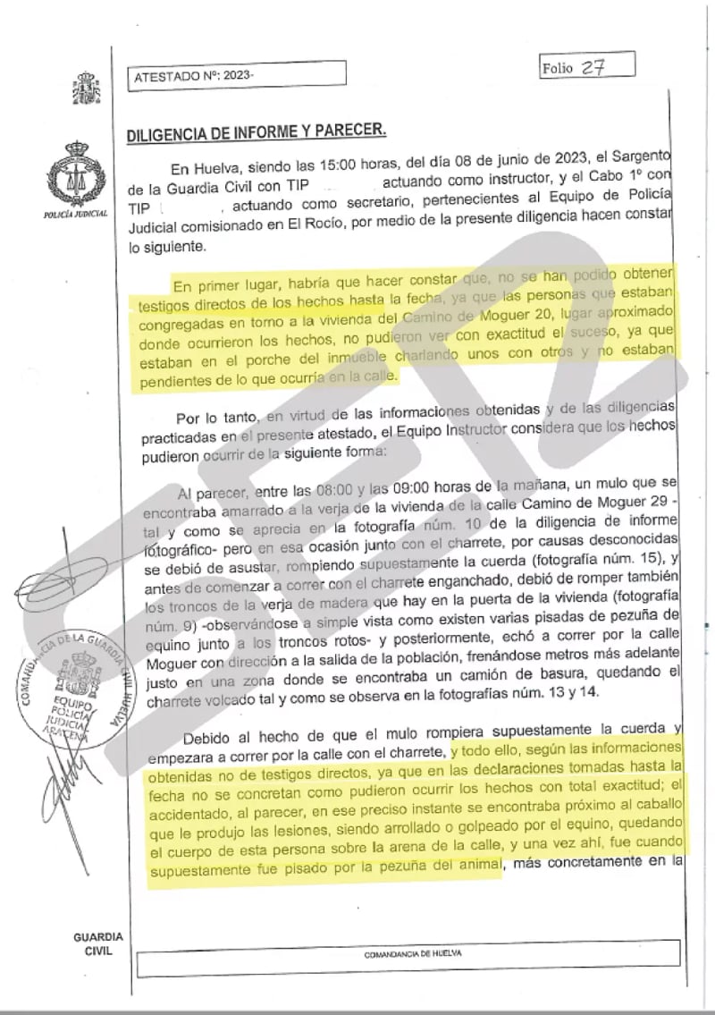 El programa 'El Larguero' de la Cadena SER ha podido acceder al atestado policial completo del grave accidente que sufrió en la Aldea de El Rocío el pasado 28 de mayo y por el que recibió fuertes golpes en la cabeza de su propio caballo después de que este lo tirará al suelo tras asustarse por un carro de bueyes supuestamente.