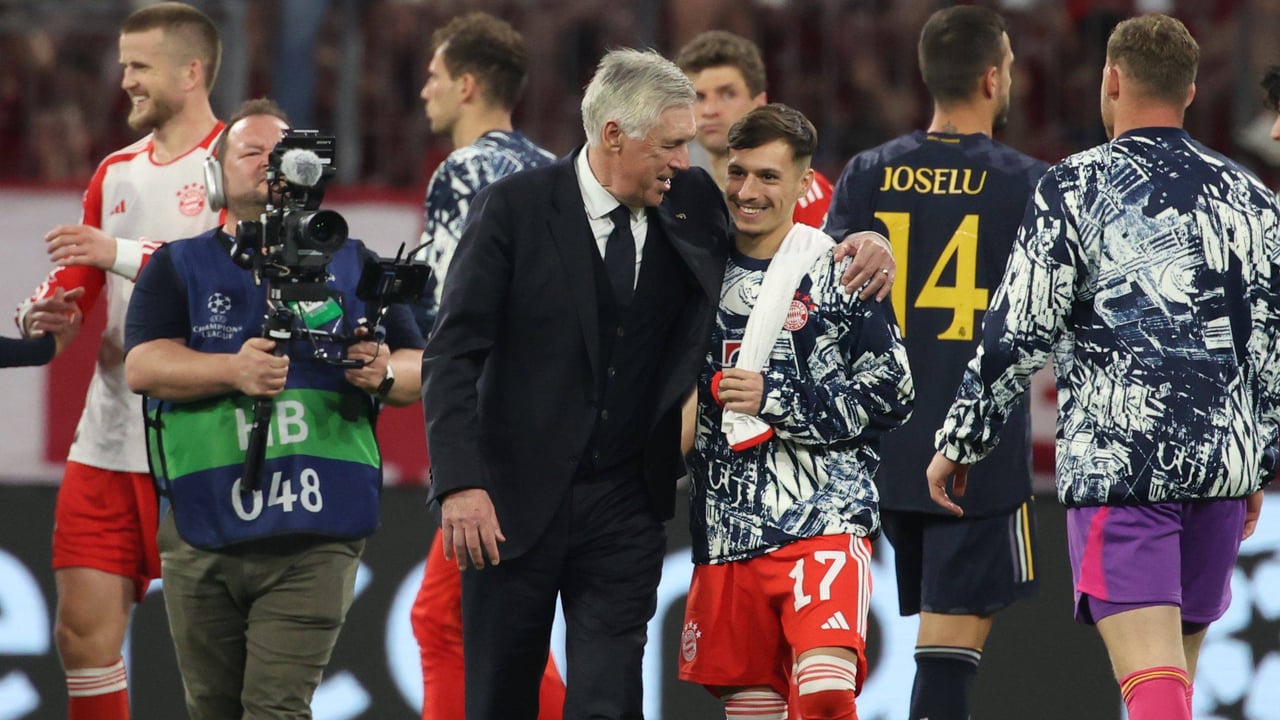 Ancelotti dio cariño a Bryan Zaragoza tras el partido de ida entre Bayern y Real Madrid.Cordon Press