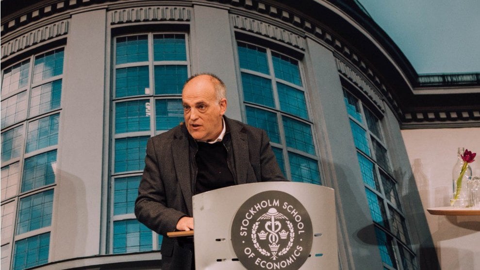 Tebas durante una conferencia en Suecia@Tebasjavier