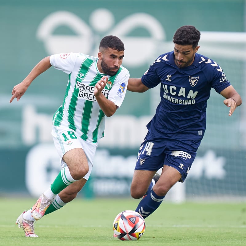 Continúa invicto el Betis Deportivo después de siete jornadas disputadas en el Grupo IV de Segunda RFEF, privilegio del que sólo puede presumir el líder Marbella, que esta tarde (16:30 horas) recibe al Cartagena B. Pero los tres empates consecutivos ante San Roque, Sevilla Atlético y Vélez pesaban un poco en la clasificación a los pupilos de Alberto González, que se sacaron la 'espinita' este domingo al vencer cuatro partidos después al UCAM Murcia y dejar su puerta a cero (2-0), con lo que únicamente han encajado cuatro goles en total. Y lo lograron los verdiblancos en el campo 2 de la Ciudad Deportiva Luis del Sol en un ejercicio de paciencia, resistencia y persistencia, aunque la magia de Yanis Senhadji y Ángel Ortiz lo hizo todo más fácil.