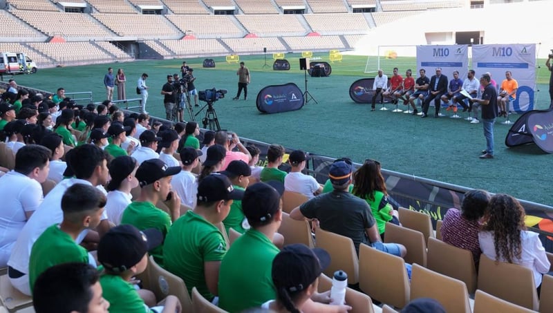 Allí, en el Estadio de La Cartuja, Carlos Marchena dio una clase práctica a un total de 125 alumnos y alumnas. 50 del CEIP Paulo Osorio del barrio de Amate de Sevilla; 50 del CEIP Nuestra Señora de Guaditoca, de Guadalcanal; y 25 pertenecientes a la Residencia Escolar Gregorio Rodríguez Navarro, de Constantina.