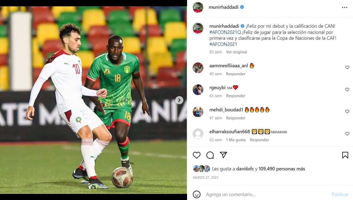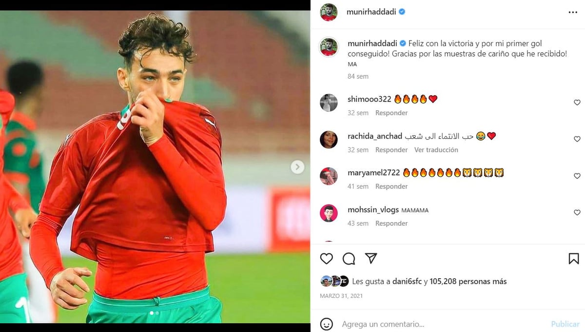 El sueño de la infancia de Munir vuelve a aparecer en el horizonte. "¡Feliz por mi debut y la calificación para la Copa de África!. ¡Feliz de jugar para la selección nacional por primera vez y clasificarnos para la CAN!", escribía tras su debut con la selección de Marruecos el pasado 27 de marzo de 2021. Cuatro días después, jugaba su segundo partido, el primero como titular y lo celebraba marcando su primer gol, ganándose una continuidad que le llevó a jugar el torneo de naciones africano.