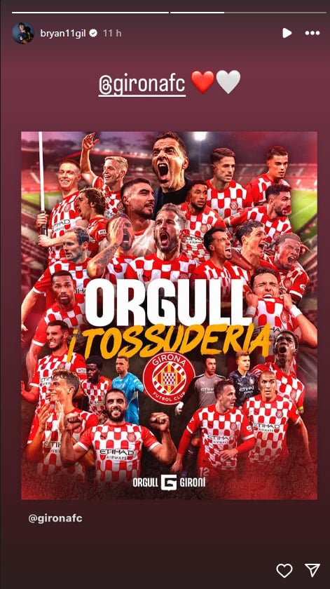 El Girona no es el único que está atento a su situación. En las últimas horas, sin ir más lejos, también ha trascendido el interés del Villarreal. Pero, mientras tanto, Bryan Gil se ha querido sumar a la felicidad de todos en la capital gerundense por lograr el objetivo de la salvación. Para ello, ha compartido en sus redes sociales la celebración lanzada por el club al que pertenece hasta el próximo 30 de junio, con Míchel y todos sus jugadores como protagonistas.