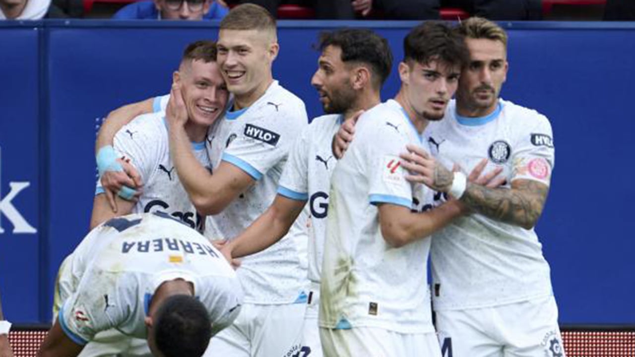 El Girona celebra uno de sus goles ante Osasuna.UES