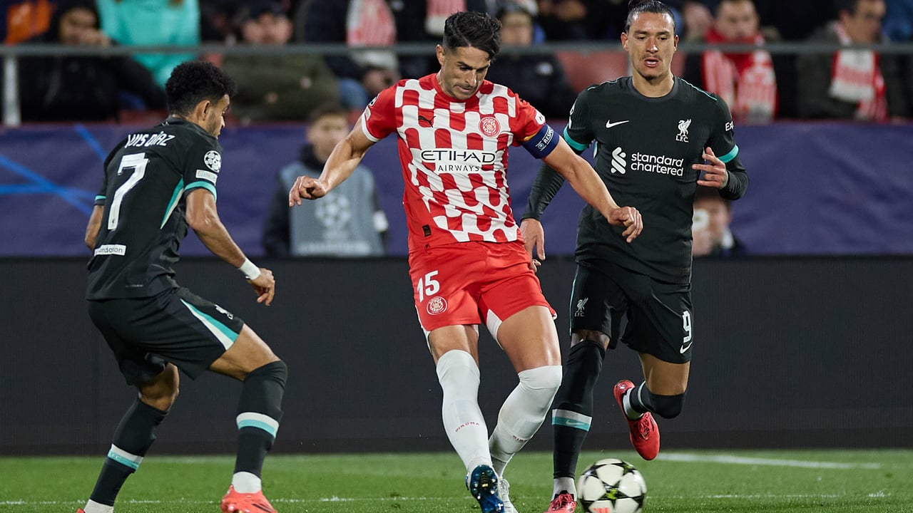 Juanpe del Girona FC en la Champions contra el Liverpool, 2024/25.Cordon Press
