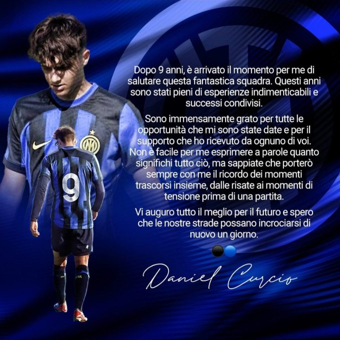 La salida de Daniel Curcio del Inter de Milán ya estaba clara desde principios del mes de agosto cuando en sus redes sociales se despidió del conjunto italiano del siguiente modo: "Después de 9 años, ha llegado el momento de decir adiós a este fantástico equipo. Estos años han estado llenos de experiencias inolvidables y éxitos compartidos. Estoy inmensamente agradecido por todas las oportunidades que me han dado y por el apoyo que he recibido de cada uno de ustedes. No es fácil para mí expresar con palabras lo que significa todo esto, pero sepan que siempre llevaré conmigo el recuerdo de los momentos que pasamos juntos, desde la risa hasta los momentos de tensión antes de un partido. Les deseo todo lo mejor para el futuro y espero que nuestros caminos puedan volver a cruzarse algún día".