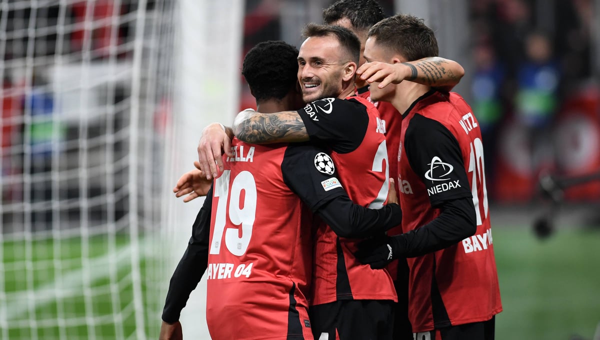 Aleix García celebra un gol con el LeverkusenCORDON PRESS